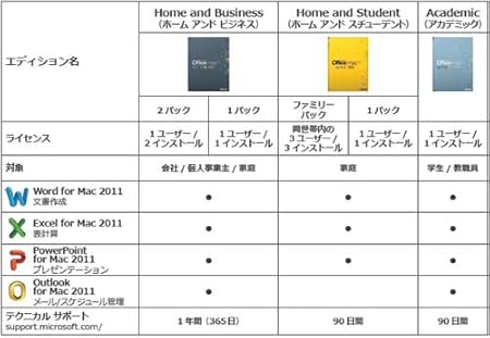 ※ Office for Mac 2011 には、従来の「アップグレード」パッケージがありません。