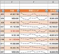 Excel for Mac 2011 のスパークラインを使用して、企業や家庭での財務の傾向を、わかりやすく表現できます。この小さなグラフ表示機能を使用して、簡単にデータの変化を見つけ出すことができます。